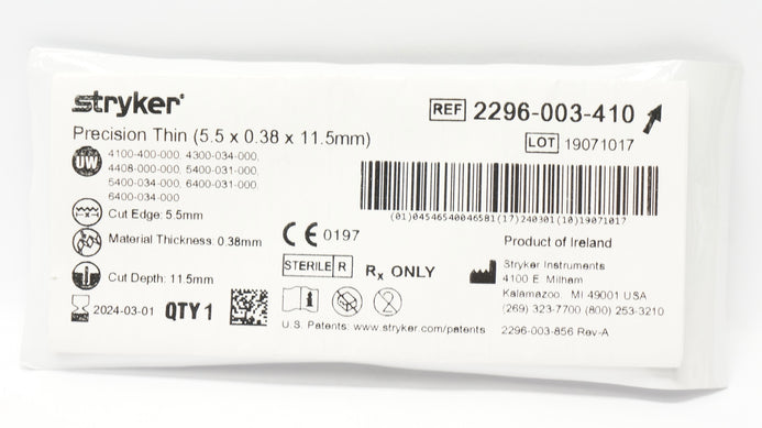 - Stryker 2296-003-410 Precision Thin Blade, Short Narrow 5.5 x 0.38 x 11.5mm (x)