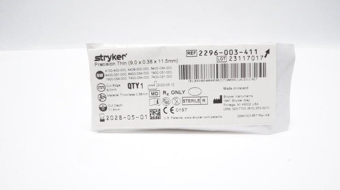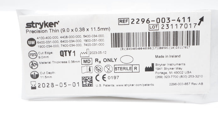 - Stryker 2296-003-411 Precision Thin Blade 9.0 x 0.38 x 11.5mm