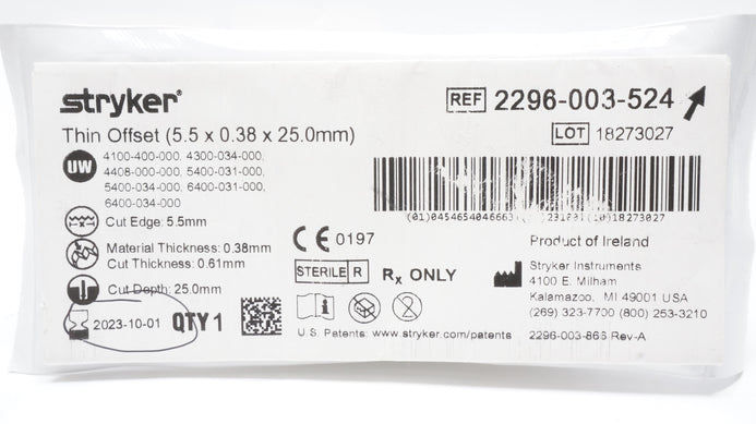 - Stryker 2296-003-524 Micro Blade Straight Coarse Offset 5.5mm x 25.0mm 0.38mm(x)