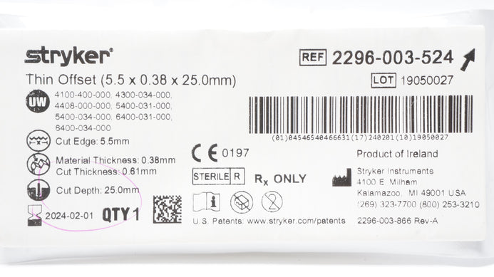 - Stryker 2296-003-524 Micro Blade Straight Coarse Offset 5.5mm x 25.0mm 0.38mm(x)