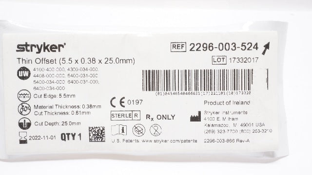 - Stryker 2296-003-524 Thin Offset 5.5 x 0.38 × 25.0mm (x)