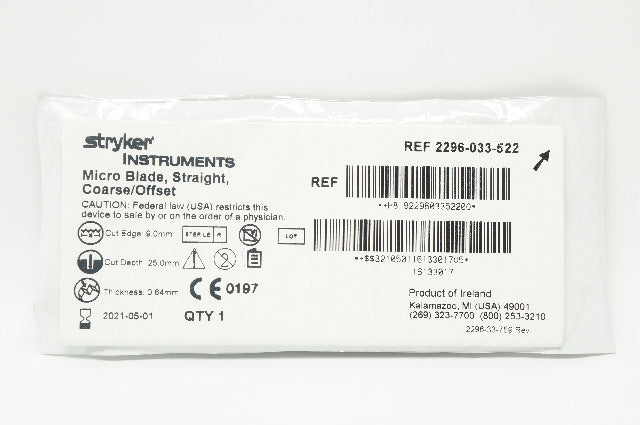 - Stryker 2296-033-522 Micro Blade, Straight, Coarse / Offset 9 x 25 x 0.64mm (x)