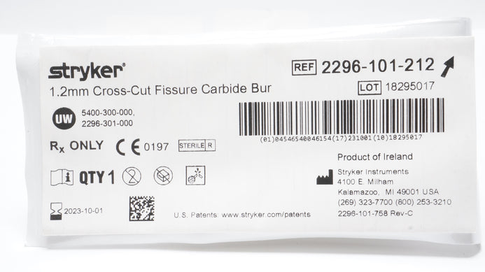 - Stryker 2296-101-212 Cross-Cut Fissure Carbide Bur 1.2mm (x)