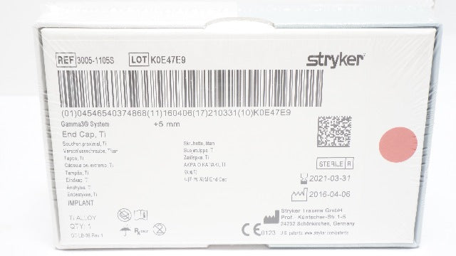 - Stryker 3005-1105S Gamma3 System End Cap,Ti +5mm (x)