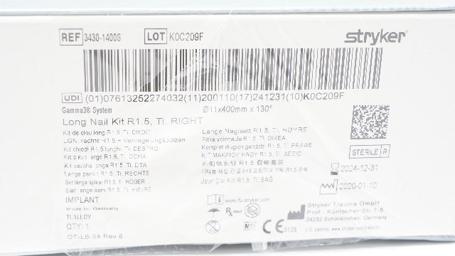 - Stryker 3430-1400S Long Nail Kit R1.5, Ti, Right 11 x 400mm x 130° (x)
