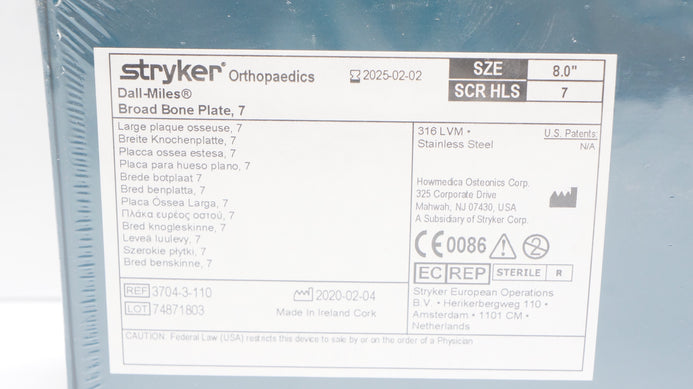 - Stryker 3704-3-110 Dall-Miles Broad Bone Plate, 7, Size 8.0In (x)