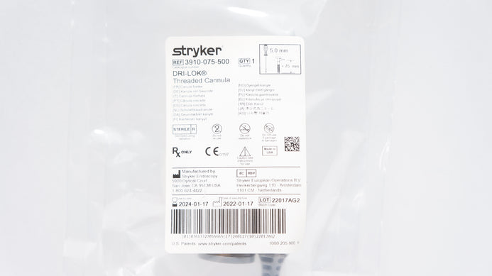 - Stryker 3910-075-500 DRI-LOK Threaded Cannula 5.0mm x 75mm (x)