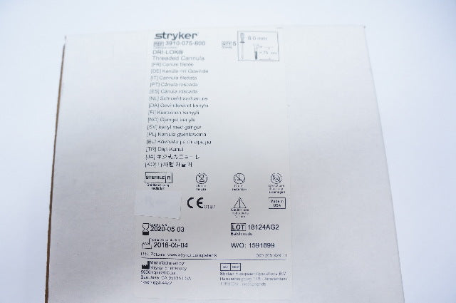 - Stryker 3910-075-800 DRI-LOK Threaded Cannula 8.0mm x 75mm (x) - Box of 5