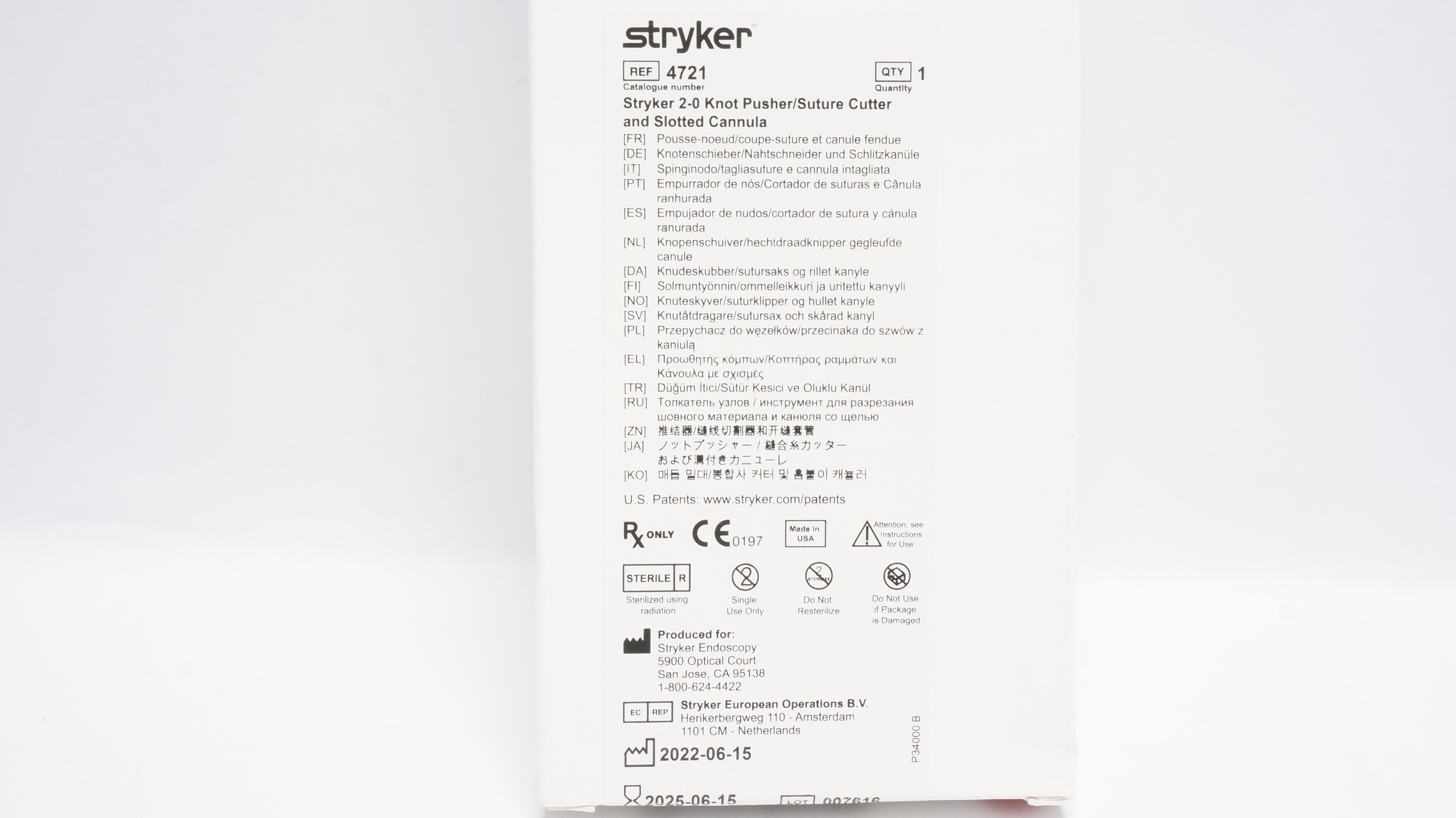 - Stryker 4721 2-0 Knot Pusher/Stre Cutter and Slotted Cannula (x)