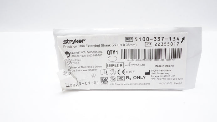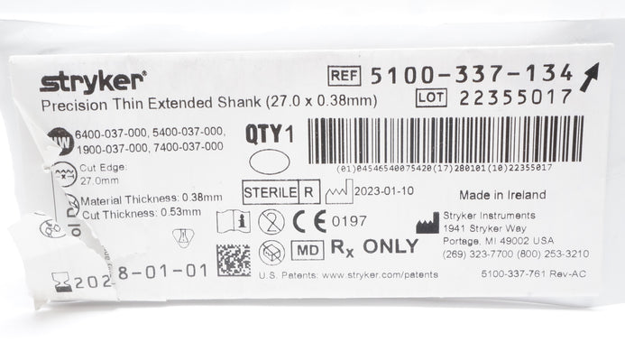 - Stryker 5100-337-134 Precision Thin Extended Shank 27.0 x 0.38mm