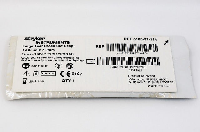 - Stryker 5100-37-114 Large Tear Cross Cut Rasp 14mm x 7mm (x)