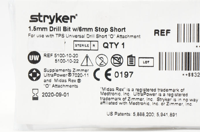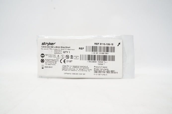 - Stryker 5110-106-15 1.5mm Drill Bit x/6mm Stop Short (x)