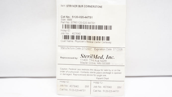 - Stryker 5120-020-447S1 Bur Cornerstone (x)