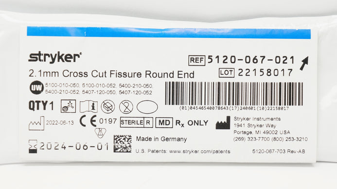 - Stryker 5120-067-021 Cross-Cut Fissure Round End Bur, 2.1mm (x)