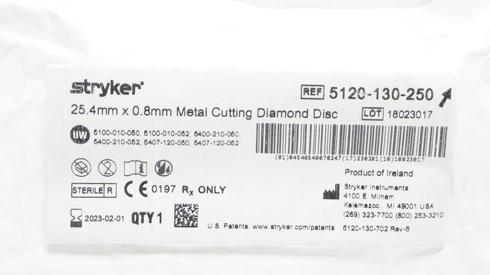 - Stryker 5120-130-250 Metal Cutting Diamond Disc 25.4mm x 0.8mm (x)