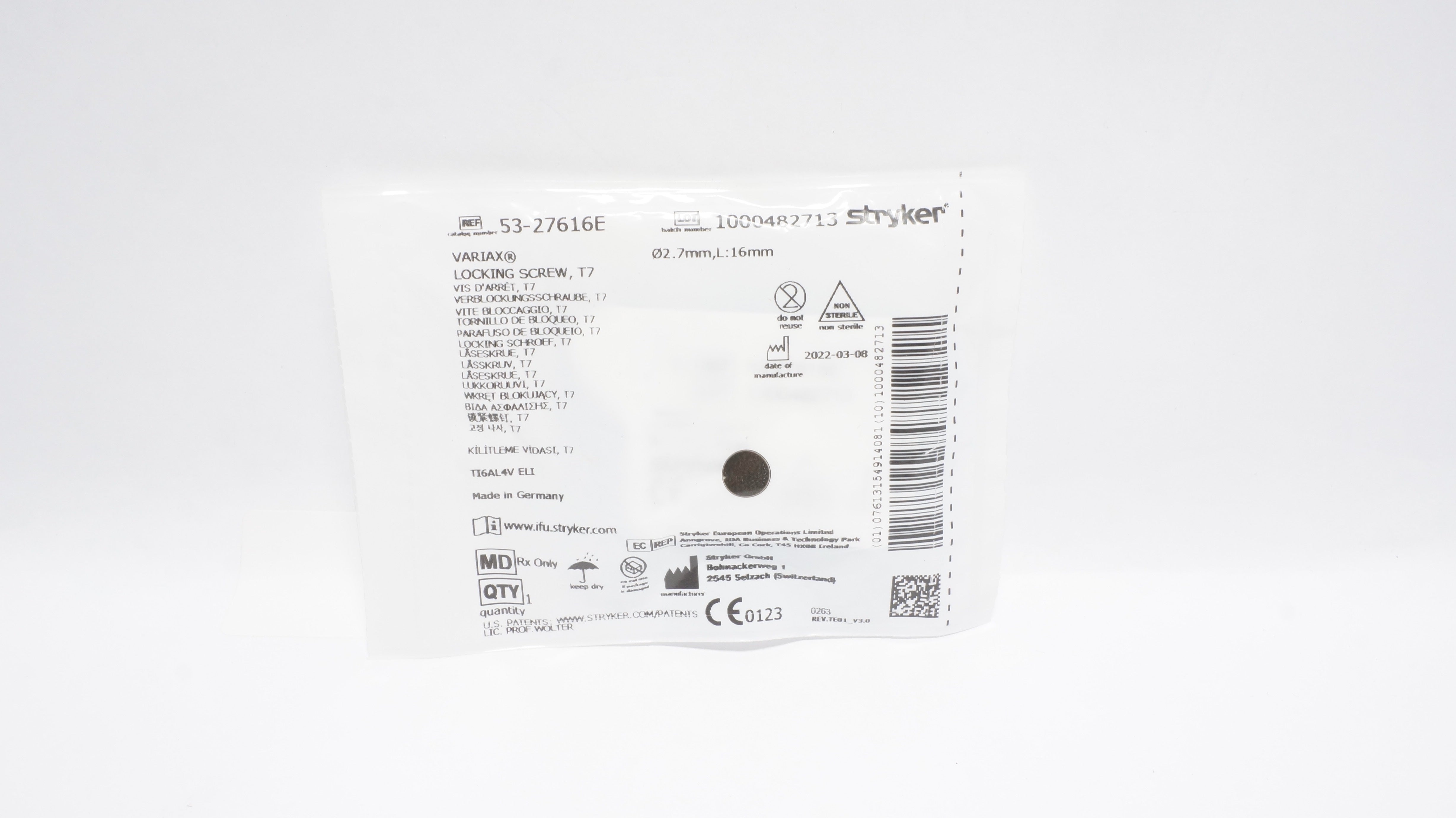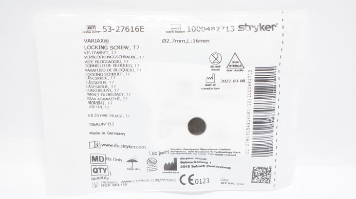 - Stryker 53-27616E Variax Locking Screw T7 2.7mm x 16mm