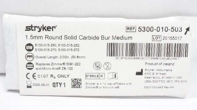 - Stryker 5300-010-503 1.5mm Round Solid Carbide Bur Medium (x)