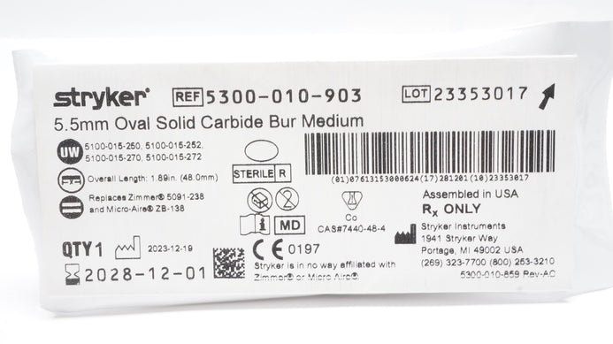 - Stryker 5300-010-903 5.5mm Oval Solid Carbide Bur, Medium