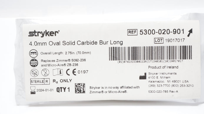 - Stryker 5300-020-901 4.0mm Oval Solid Carbide Bur Long (x)