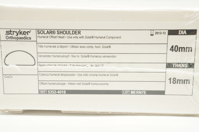 - Stryker 5352-4018 Solar Shoulder Humeral Offset Head 40mm 18mm (x)