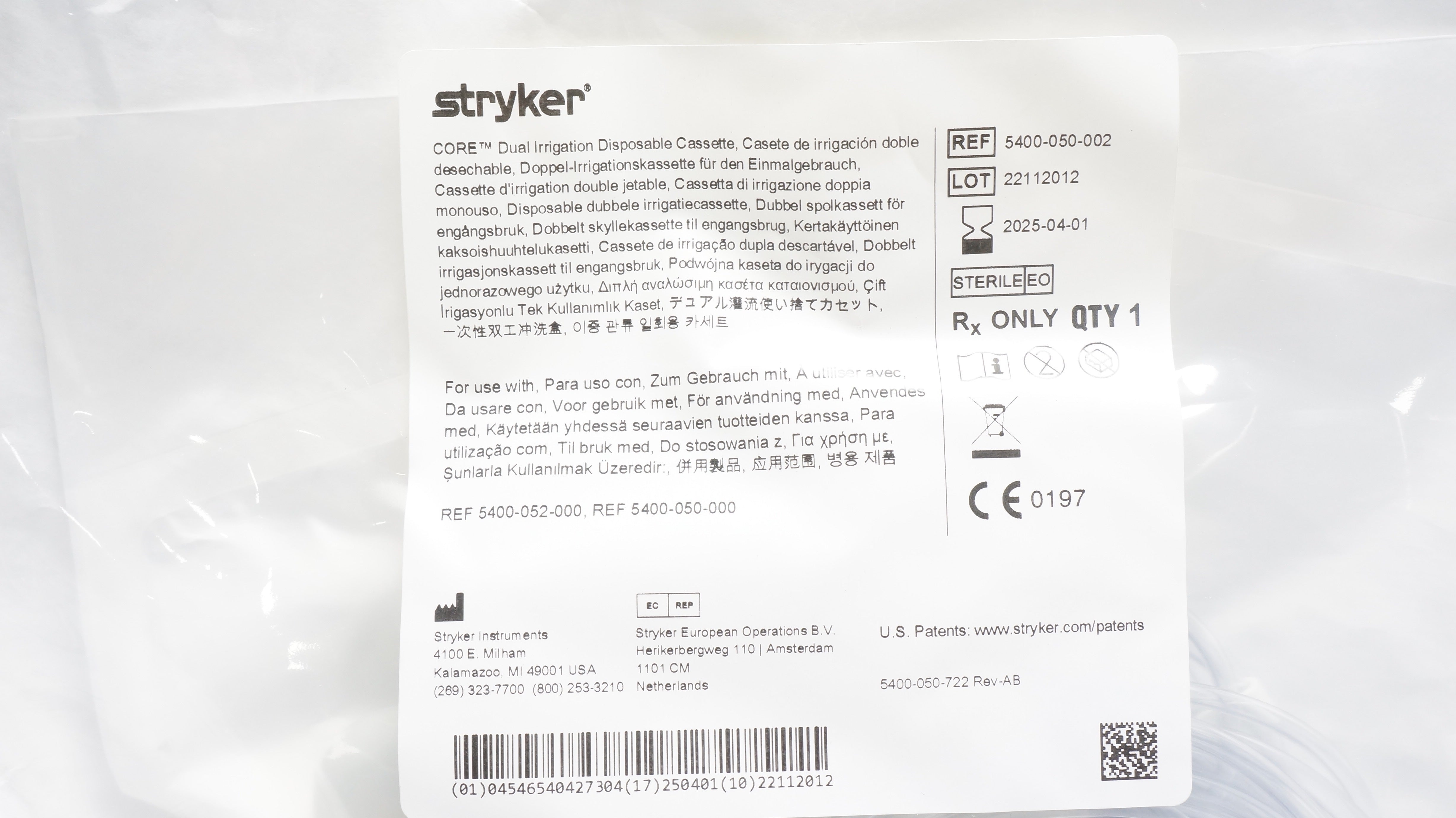 - Stryker 5400-050-002 Core Dual Irrigation Disposable Cassette (x)
