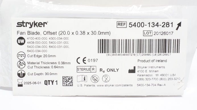 - Stryker 5400-134-281 Fan Blade Offset 20.0 x 0.38 x 30.0mm (x)