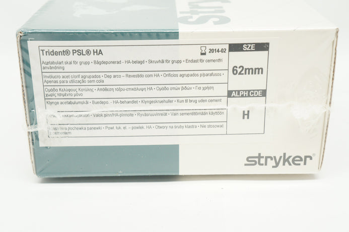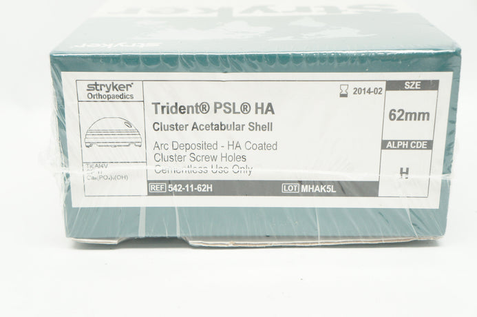 - Stryker 542-11-62H Trident PSL HA Cluster Acetabular Shell 62mm (x)
