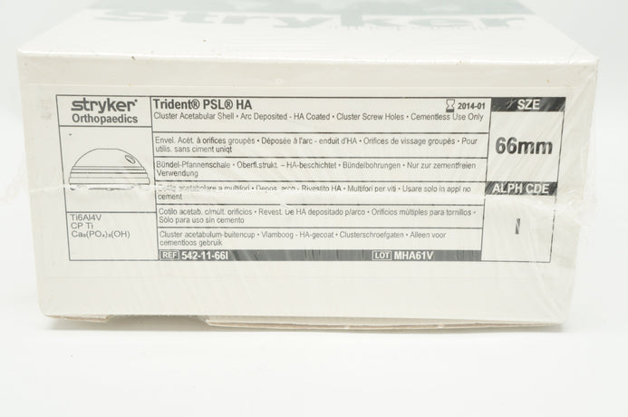 - Stryker 542-11-66I Trident PSL HA Cluster Acetabular Shell 66mm (x)
