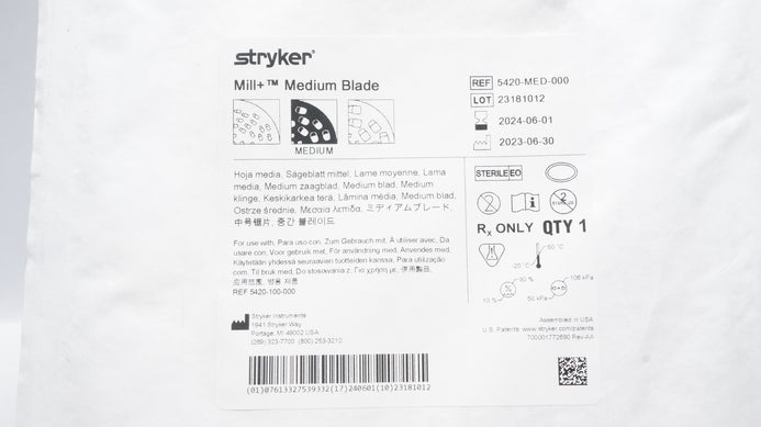 - Stryker 5420-MED-000 Mill+ Medium Blade (x)