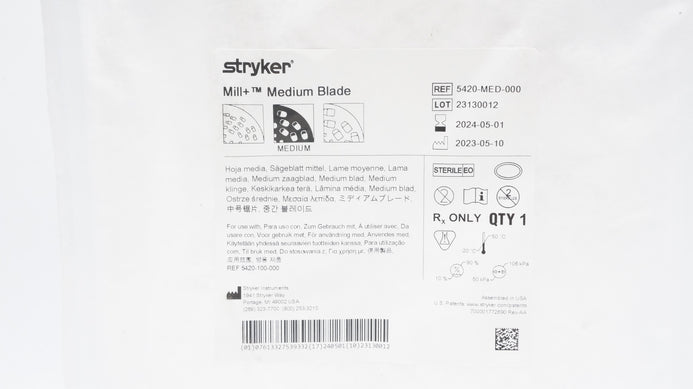 - Stryker 5420-MED-000 Mill+ Medium Blade (x)