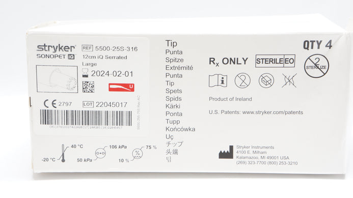 - Stryker 5500-25S-316 Sonopet iQ Serrated Large Tip Aspirator 12cm (x) - Box of 4