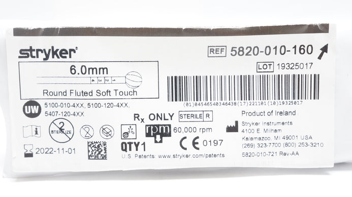 - Stryker 5820-010-160 6.0mm Round Fluted Bur Soft Touch (x)