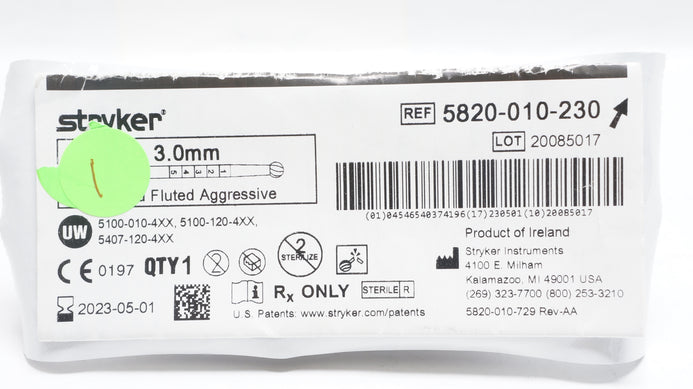 - Stryker 5820-010-230 3.0mm Round Fluted Aggressive (x)