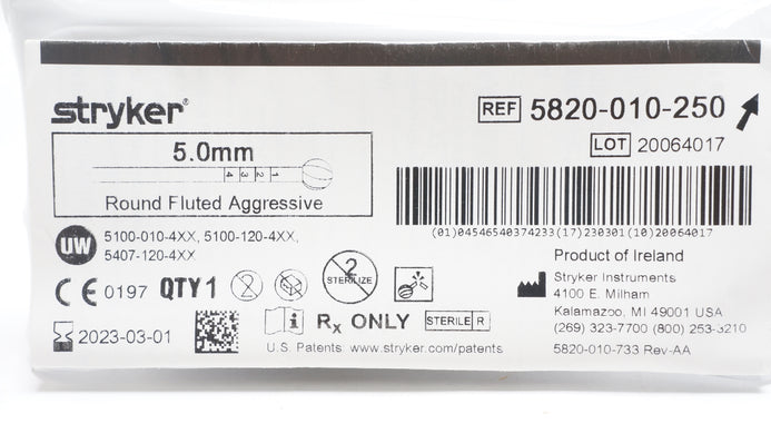 - Stryker 5820-010-250 Round Fluted Aggressive 5.0mm (x)
