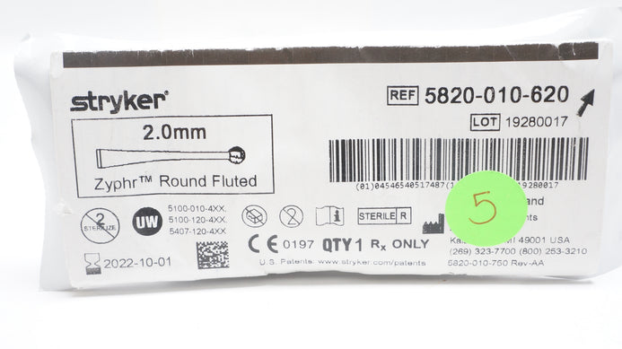 - Stryker 5820-010-620 Zyphr Round Fluted Bur 2.0mm (x)