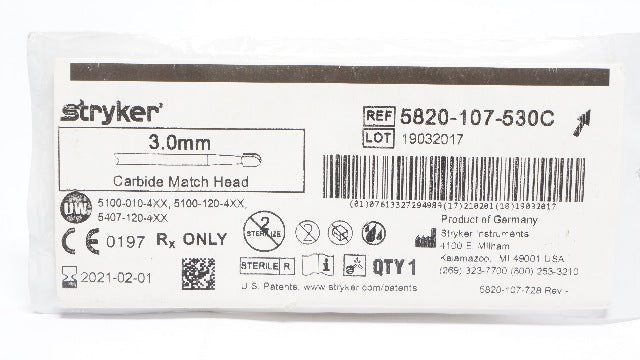 - Stryker 5820-107-530C Carbide Match Head 3.0mm (x)