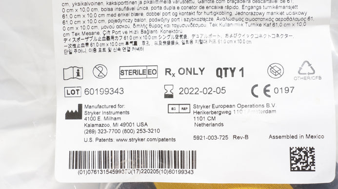 - Stryker 5921-024-235 Color Cuff Quick Connect Dual Port Single Bladder 24inch(x)