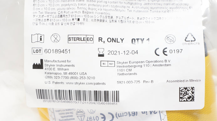 - Stryker 5921-024-235 Color Cuff Quick Connect Dual Port Single Bladder 24inch(x)