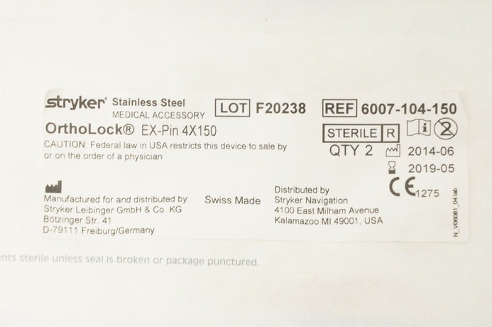 - Stryker 6007-104-150 OrthoLock EX-Pin Stainless Steel Me Accessory -Pack of 2(x)