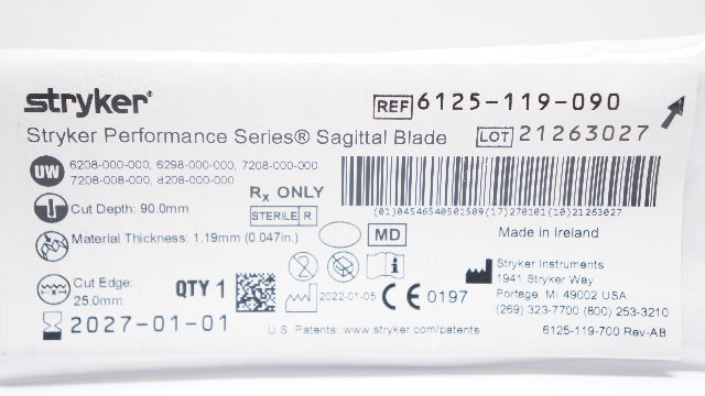 - Stryker 6125-119-090 Performance Series Sagittal Blade 25 x 90mm x 0.047inch