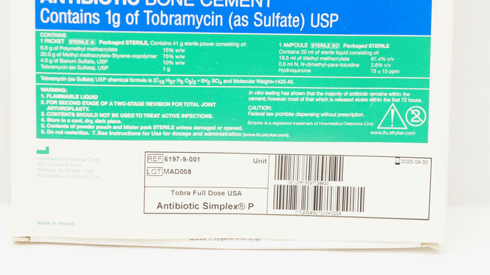 - Stryker 6197-9-001 Simplex P With Tobramycin Antibiotoc Bone Cement 1g (x)