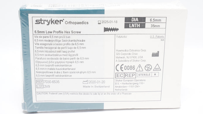- Stryker 7030-6535 6.5mm Low Profile Hex Screw 6.5mm x 35mm (x)