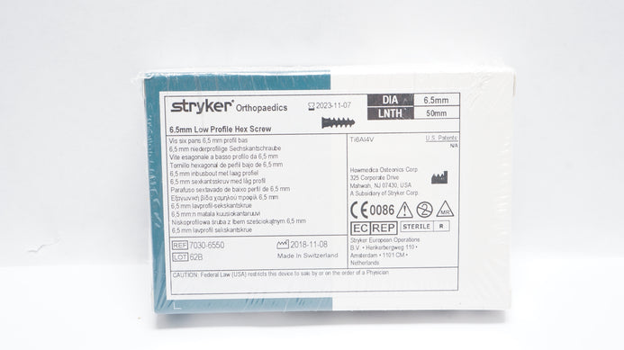 - Stryker 7030-6550 Low Profile Hex Screw 6.5mm x 50mm (x)