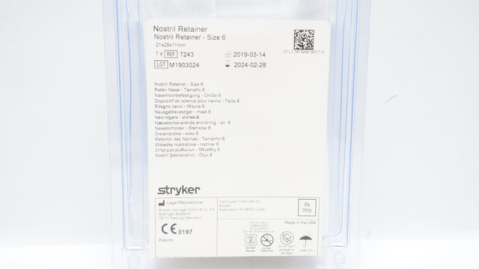 - Stryker 7243 Nostril Retainer, Size 6, 21 x 28 x 11mm (x)