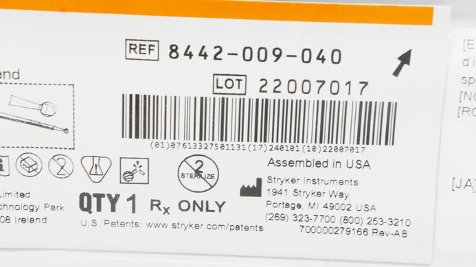 - Stryker 8442-009-040 iBur 4.0mm Precision Round, Proximal Bend (x)