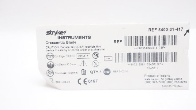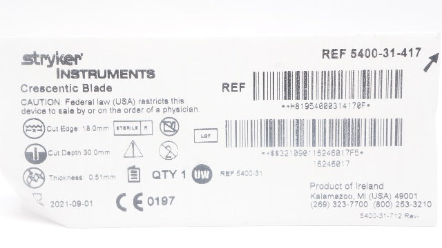- Stryker Instruments 5400-31-417 Crescentic Blade 18.0mm x 30.0mm x 0.51mm (x)