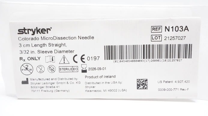 - Stryker N103A Colorado MicroDissection Ndle 3cm x 3/32inch Sleeve Diameter