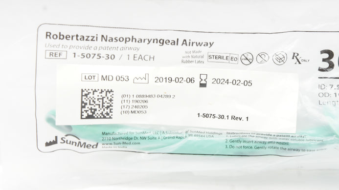 - SunMed 1-5075-30 Robertazzi Nasopharyngeal Airway 30Fr 7.5ID x 10.0 OD x135mm(x)