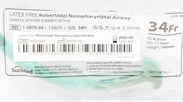 - SunMed 1-5075-34 Robertazzi Nasopharyngeal Airway 34Fr. (x)