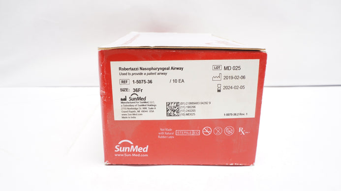- SunMed 1-5075-36 Robertazzi Nasopharyngeal Airway 36Fr - Box of 10 (x)